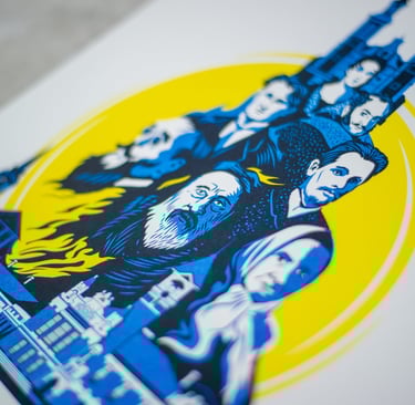 Marijampolės išleidimo proga sukūrėme unikalų plakatą, kuriame įamžintos iškiliausios Lietuvos tarpukario įžymybės ir svarbiausi miesto architektūriniai šedevrai.